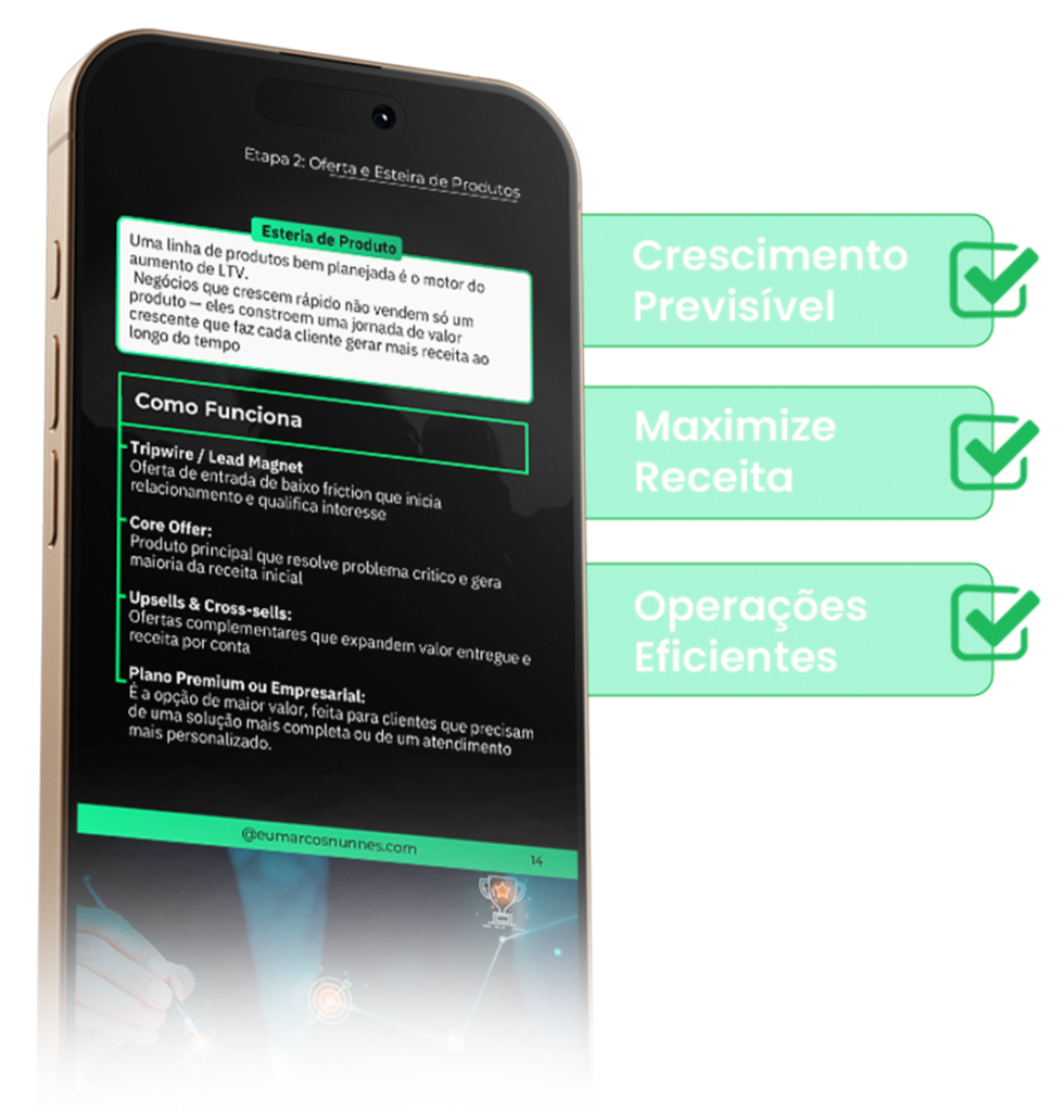 Aqui, você encontrará informações valiosas e práticas para estruturar posicionamento, oferta, funis, distribuição e operações, de forma que cada etapa do seu negócio trabalhe a seu favor.